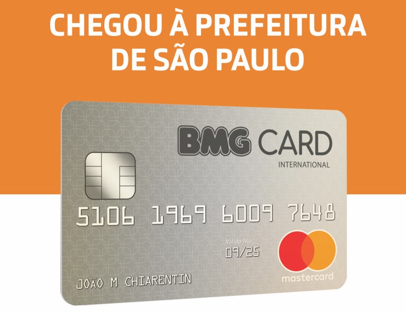Cartão de crédito consignado com desconto no holerite BMG Card internacional. Sem anuidade, sem consulta SPC, pré-aprovado e exclusivo aos servidores públicos municipais efetivos, aposentados e pensionistas do IPREM e HSPM da Prefeitura de São Paulo. Limite de crédito extra com utilização de 5% da margem consignável.