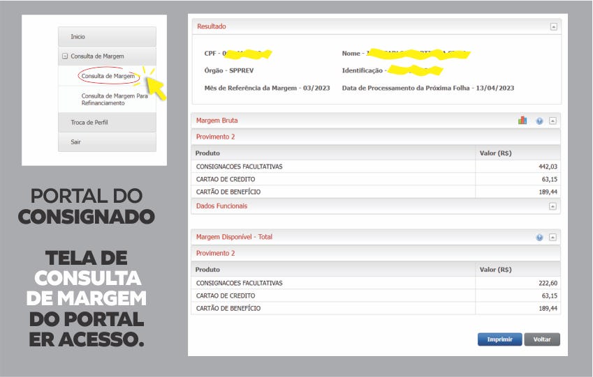Através do portal de consignação, https://www.portaldoconsignado.com.br/home?0 servidores públicos estaduais do governo do estado de São Paulo, SEFAZ, SPPREV e Polícia MilitarPolicial Militar PM ciaf PMESP, através de acesso individual conseguem obter dados das operações de crédito consignado e a consulta de margem disponível atualizada.